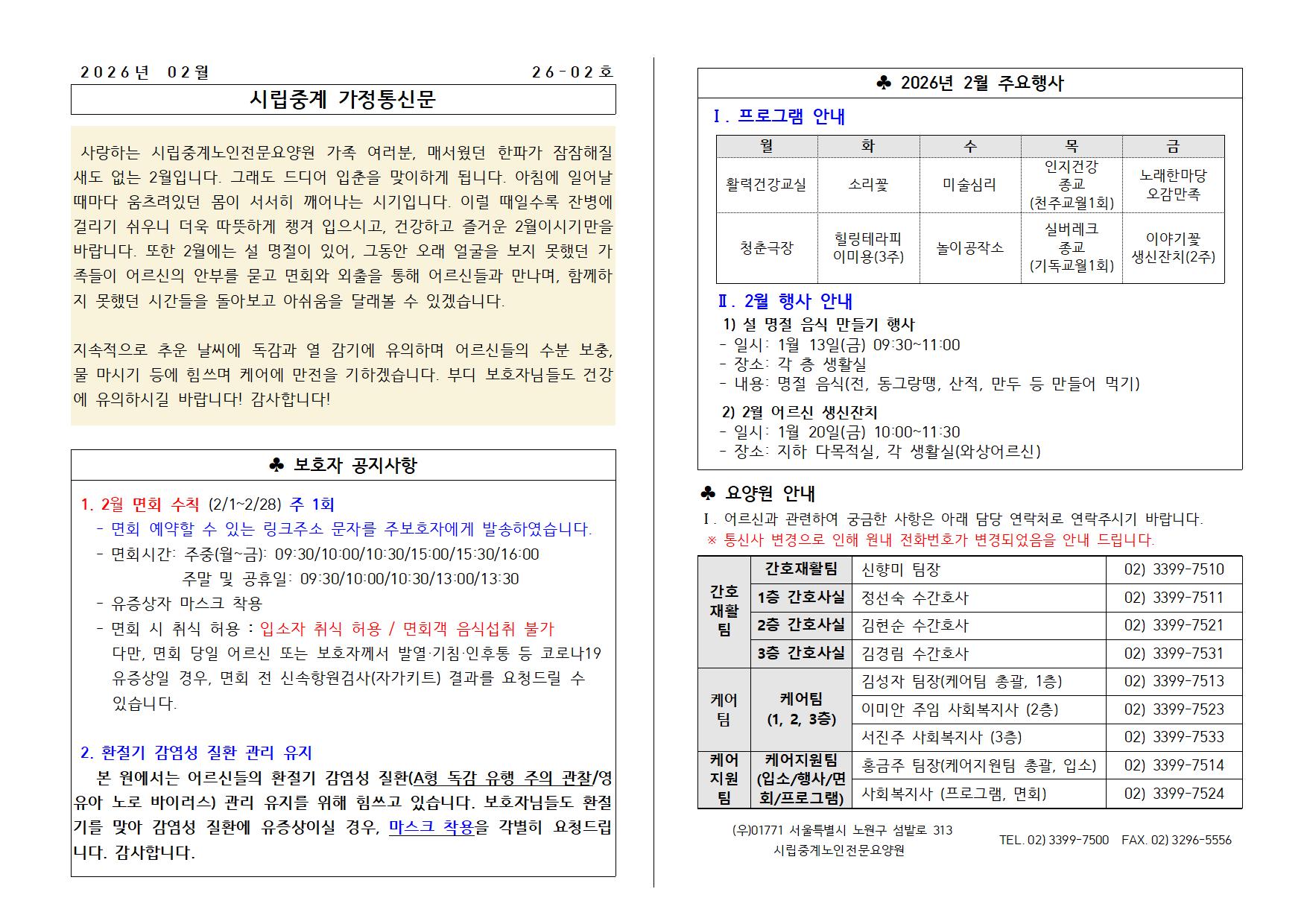 시립중계노인전문요양원 2026년 2월 가정통신문